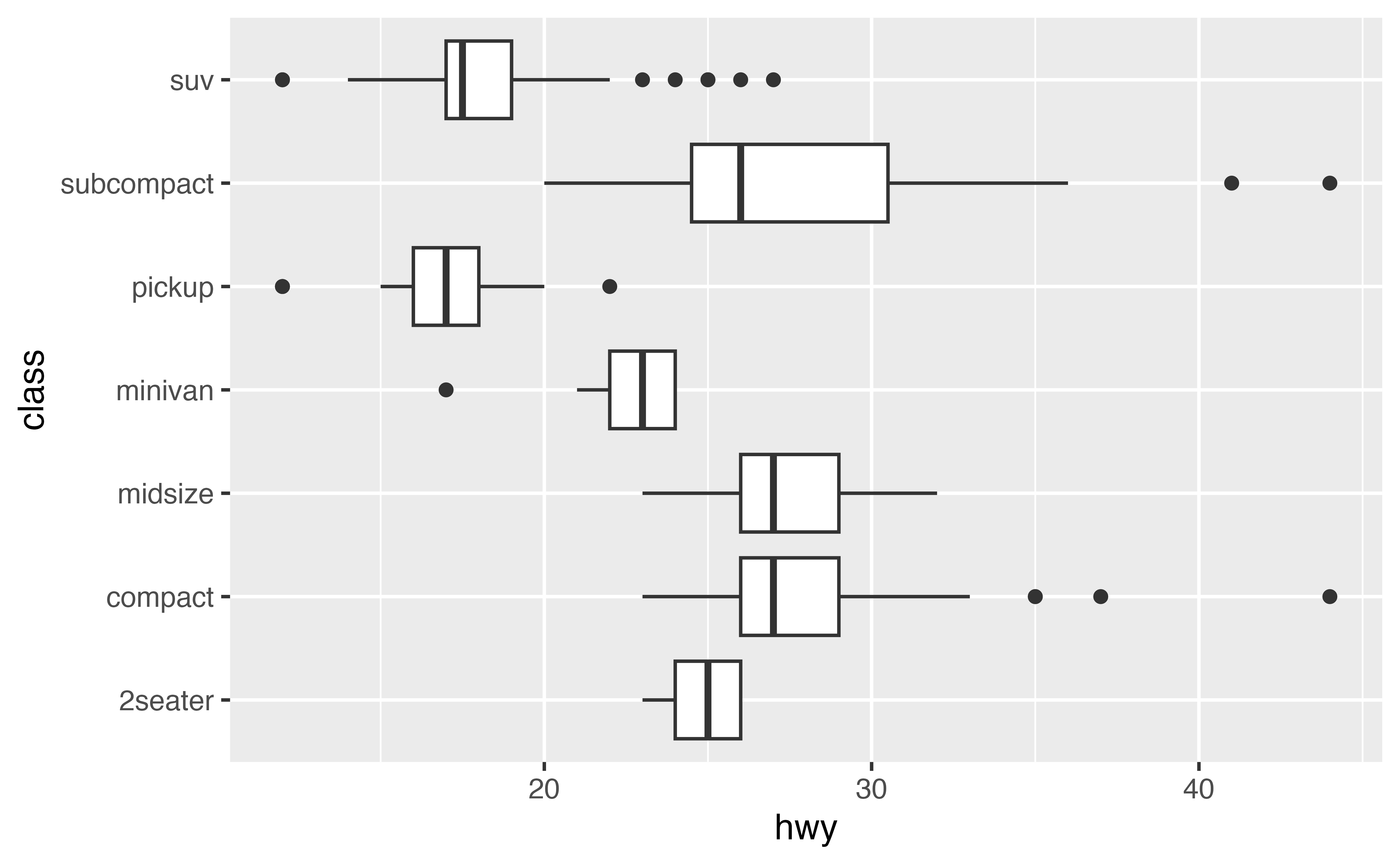 geom_boxplot(mapping = aes(x = hwy, y = class))
